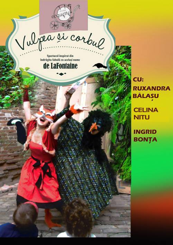 Spectacolul este inspirat de îndrăgita fabulă cu același nume, scrisă de LaFontaine, adaptată pe înțelesul și pe placul copiilor. Costumele sunt deosebit de atractive, conținând și măști venețiene. Șireata Vulpe îl păcălește pe Corb, care își dorește doar să învețe să cânte și să danseze la concursul din pădure, pentru a-i fura cașcavalul. Spectacolul este înțesat de momente menite să stârnească hazul celor mici, dar și atenția lor la anumite comportamente, pe care fabula dorește să le aducă în vedere. Cu ajutorul ariciului, dar și al micilor spectatori, Corbul va găsi un mod de o face pe Coana Vulpe să ...Citeste mai mult-->